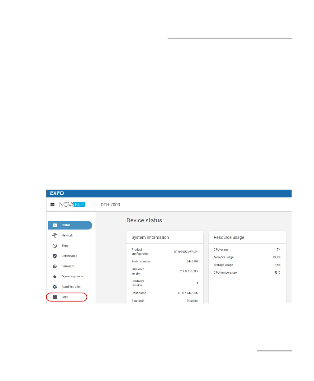 3. From the Nova Fiber Web application, go to the Logs page.