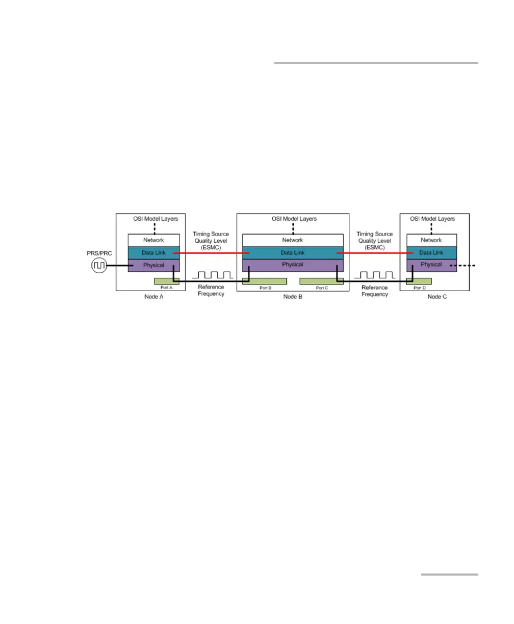 Source/Clock (PRS/PRC) in a unidirectional flow. Any node in the chain not