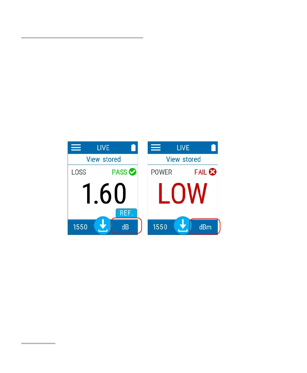 You can switch between the power and loss measurement mode of the