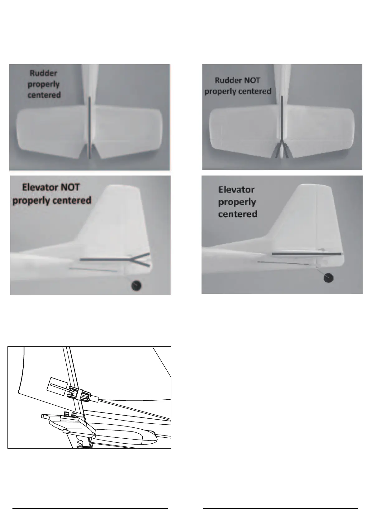 After connecting the clevis to the control horns, observe the rudder to see if it is centered.