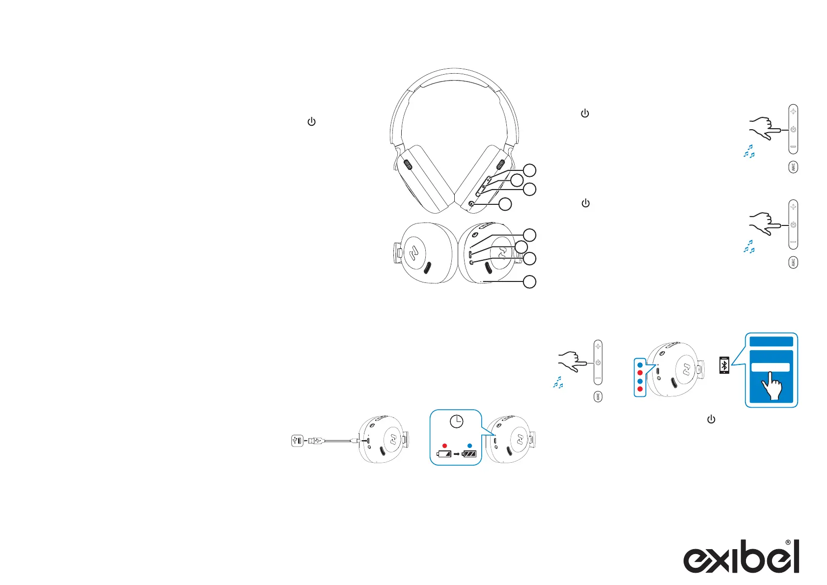 indikatorn (5) börjar blinka växelvis blått och rött. Hörlurarna