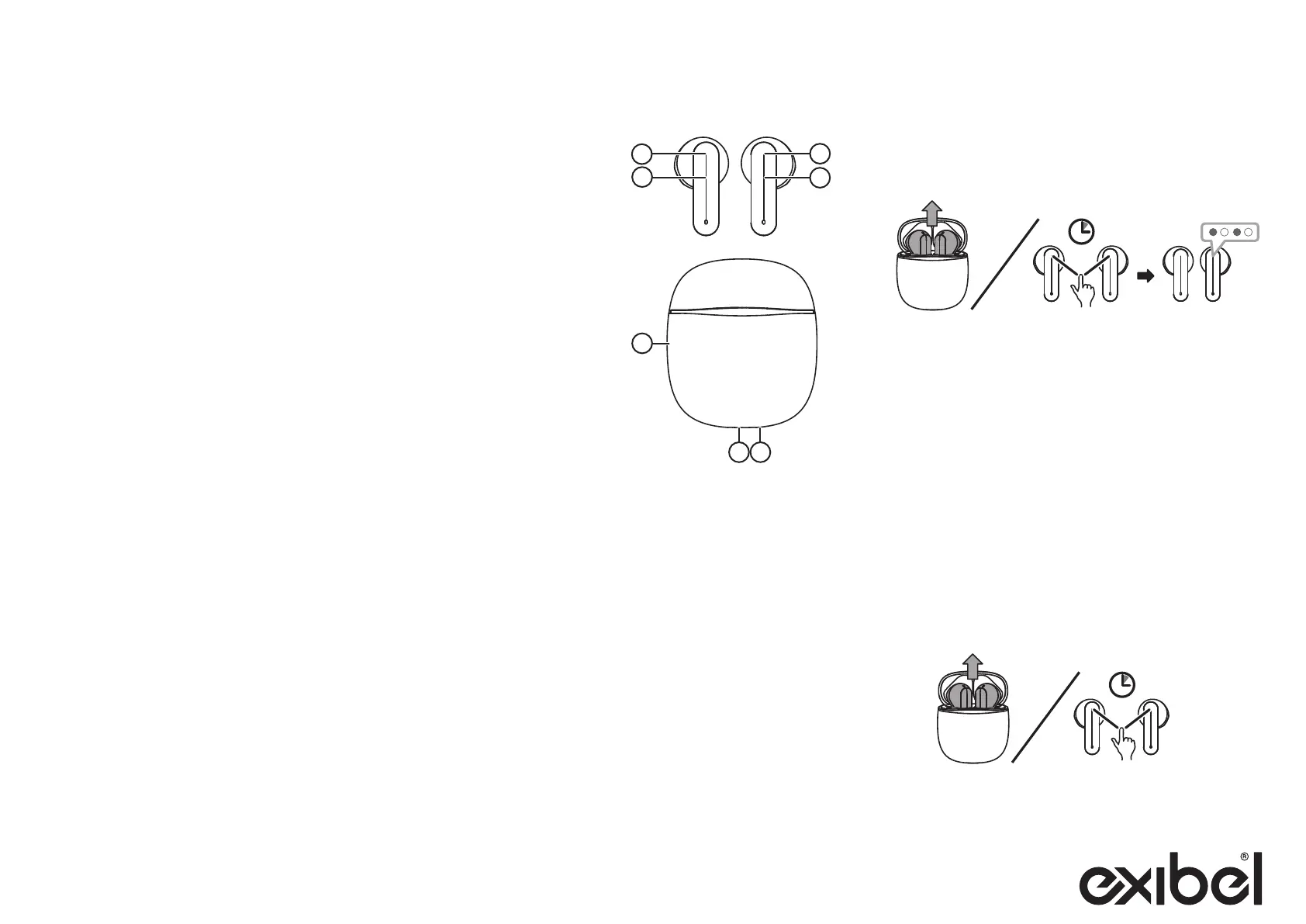 etuiet eller, dersom de ikke er i ladeetuiet, holde (2) og (4) inne i