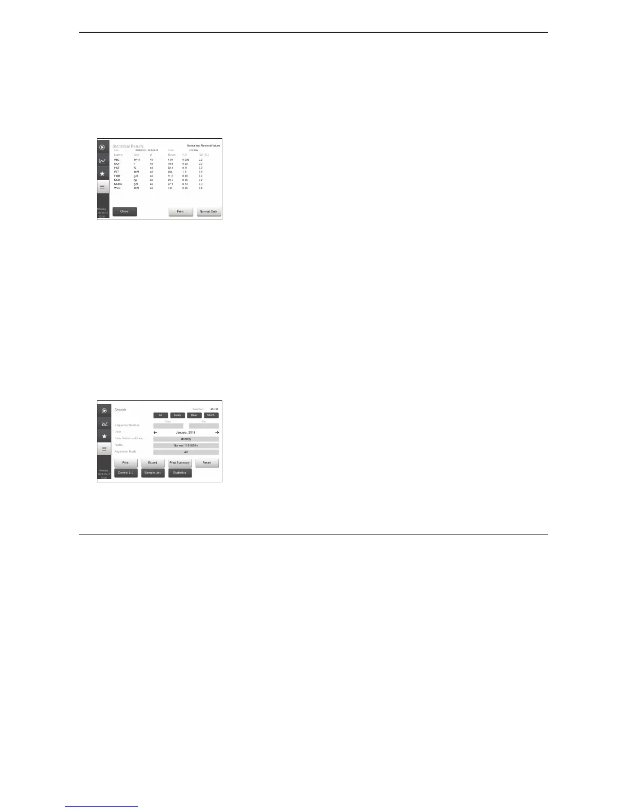 To view only normal statistic values, press Normal Only