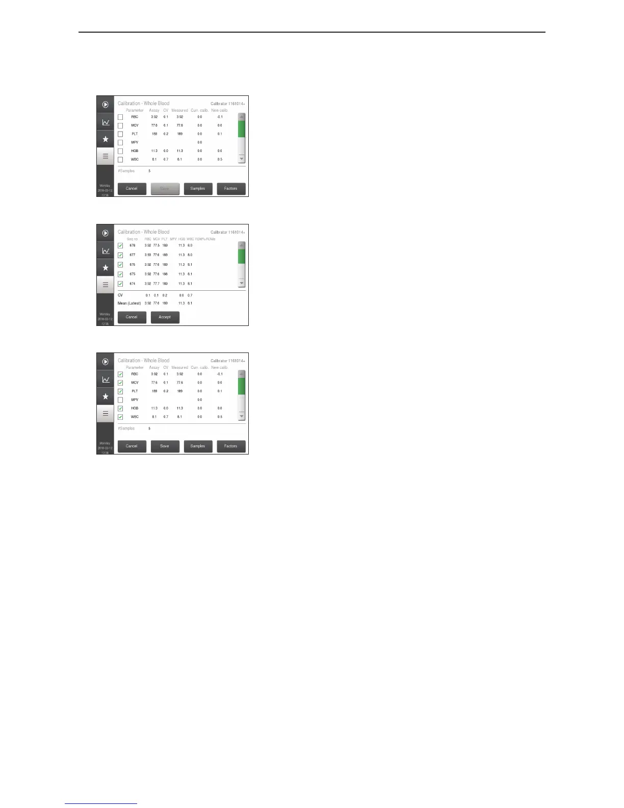 Note: After the new calibration factors have been saved, the last patient sample analyzed can