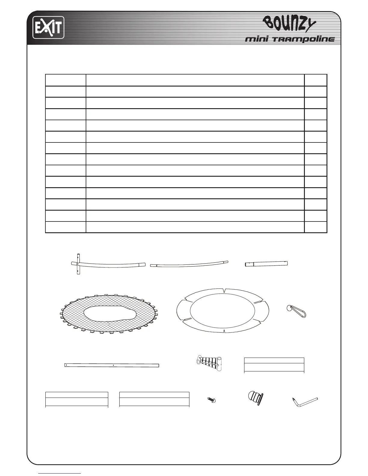 Exit Bounzy - Trampoline Parts List