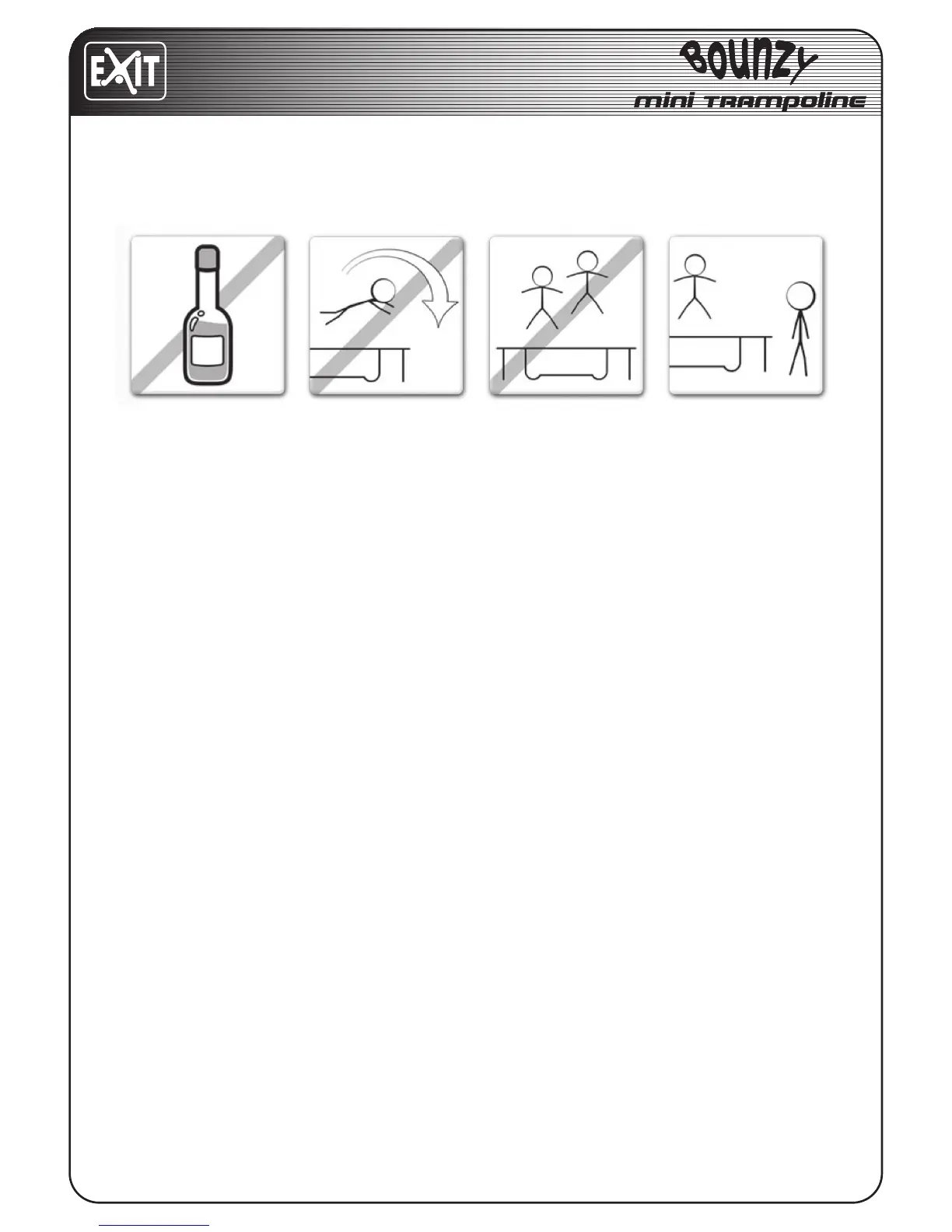 • Benutzen Sie das Trampolin nicht, wenn Sie Alkohol oder Drogen zu sich genommen