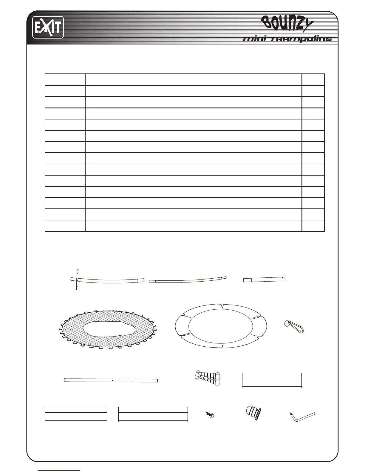 ONDERDELENLIJST TRAMPOLINE