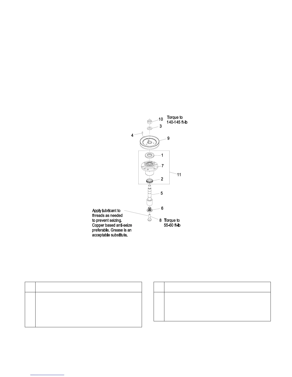 sheaves, spindles and bearings, spindles and sheaves, and under top bearing guard. DO NOT use a copper or nickel based antiseize.