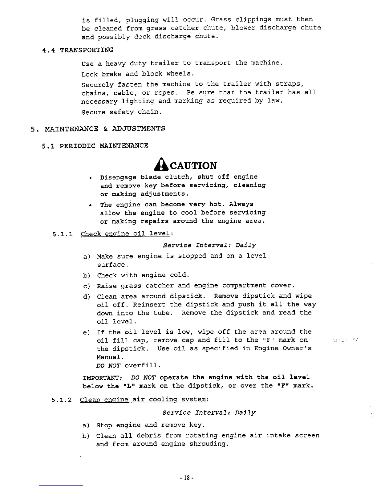 Exmark Explorer - Maintenance & Adjustments; Transporting; Periodic Maintenance; Check Engine Oil Level