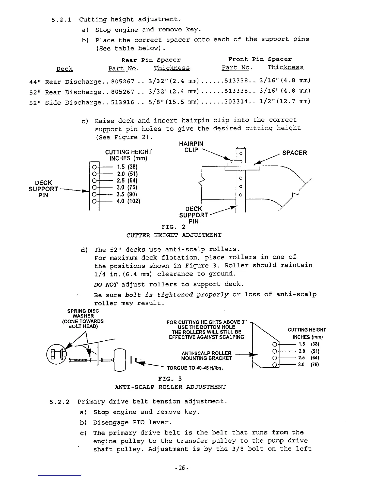 Exmark Explorer - Cutting Height Adjustment; Anti-Scalp Roller Adjustment