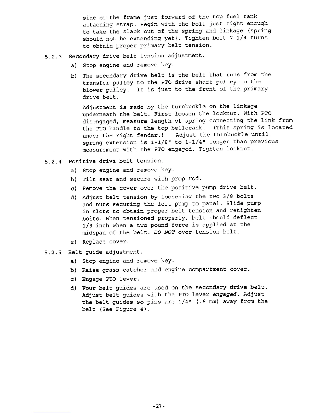Exmark Explorer - Secondary Drive Belt Tension Adjustment; Positive Drive Belt Tension; Belt Guide Adjustment