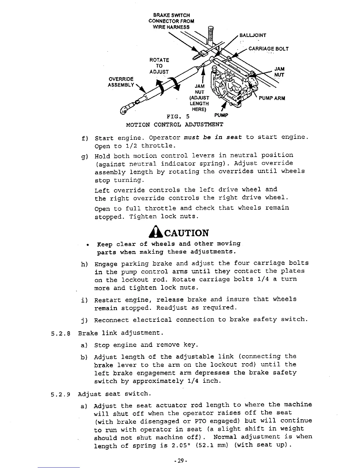 Exmark Explorer - Brake Link Adjustment; Adjust Seat Switch; Motion Control Adjustment