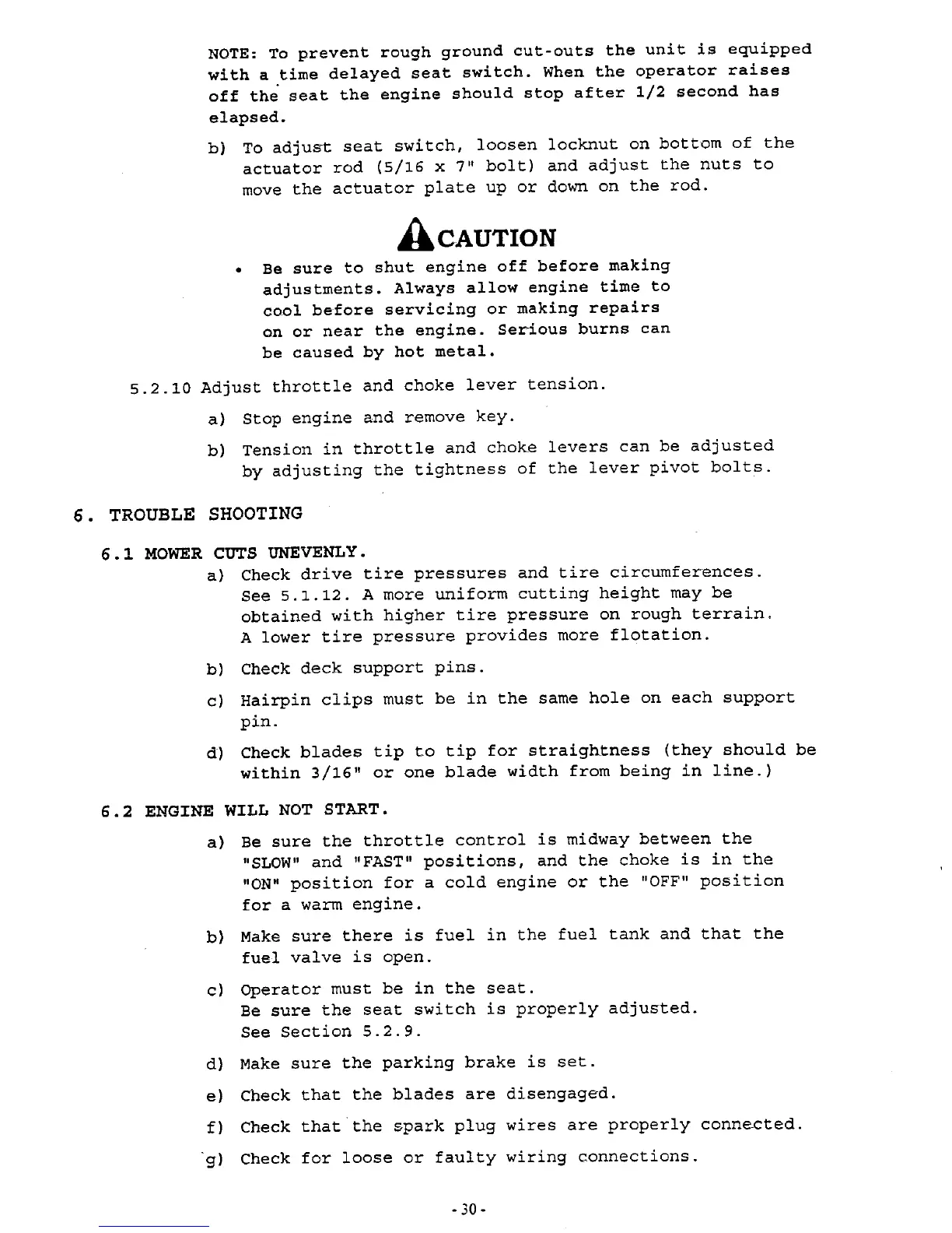 Exmark Explorer - Troubleshooting; Mower Cuts Unevenly; Engine will Not Start