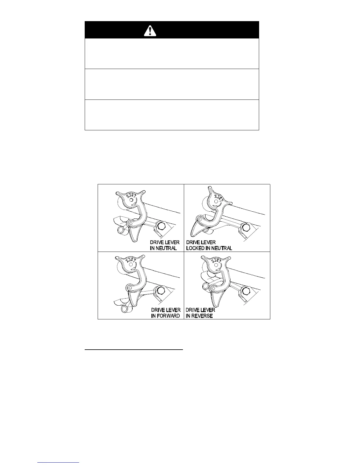 4.3.4 Drive Wheel Engagement/Turning: With drive levers locked in “neutral”, shift