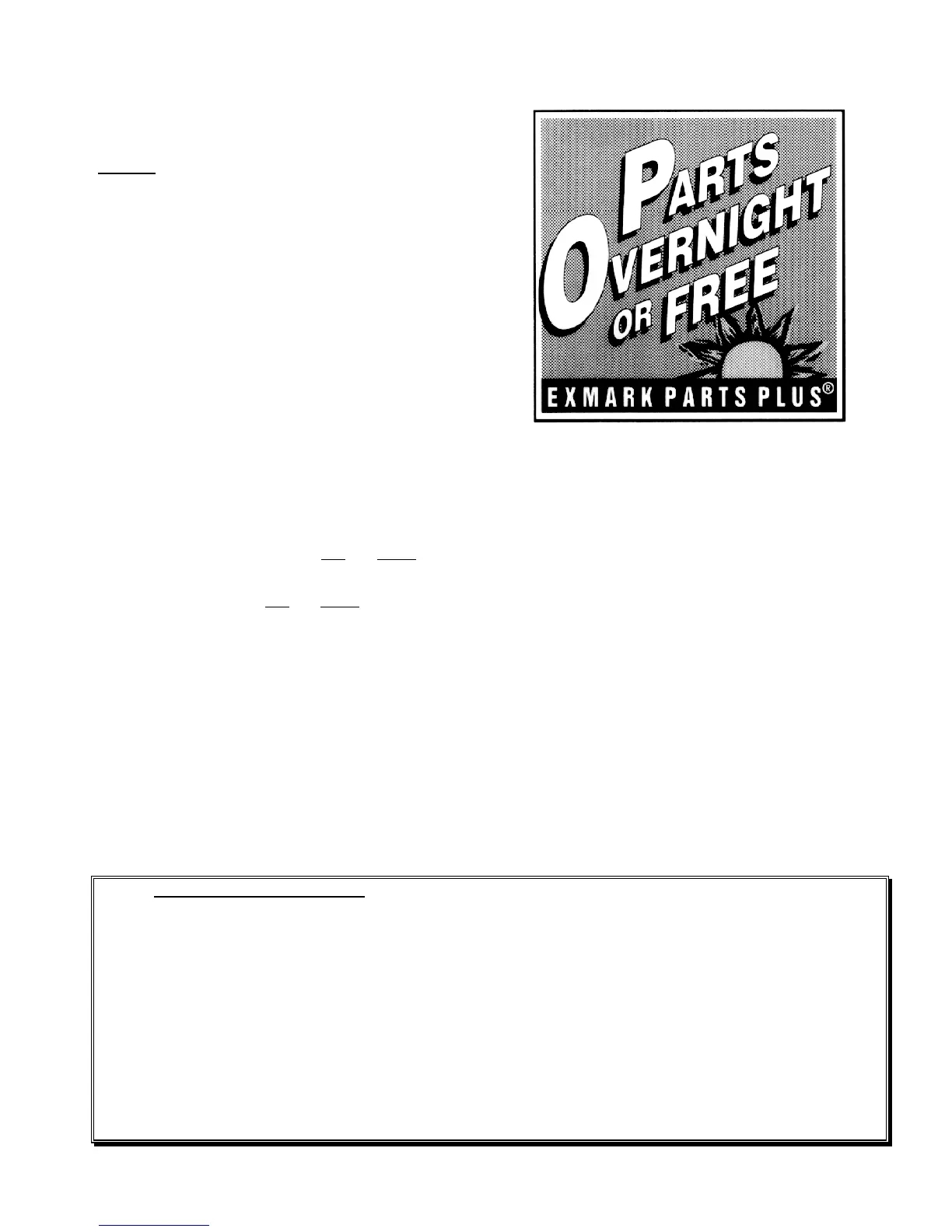 distributor, same day, overnight UPS Exmark bills the distributor for parts and shipping charges, where applicable.