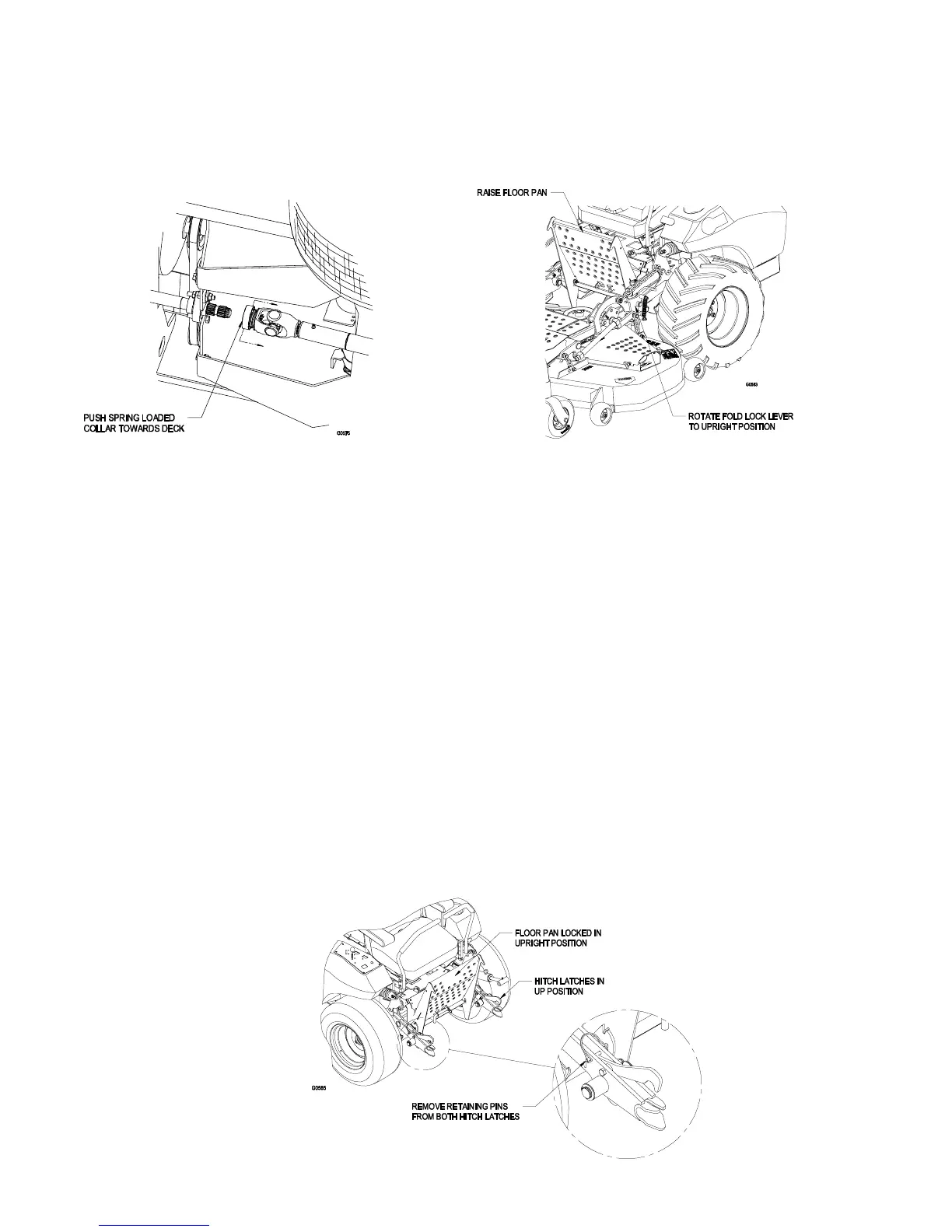 3.2.9 Remove the hitch latch pins from the hitch brackets. Raise the hitch latch above the