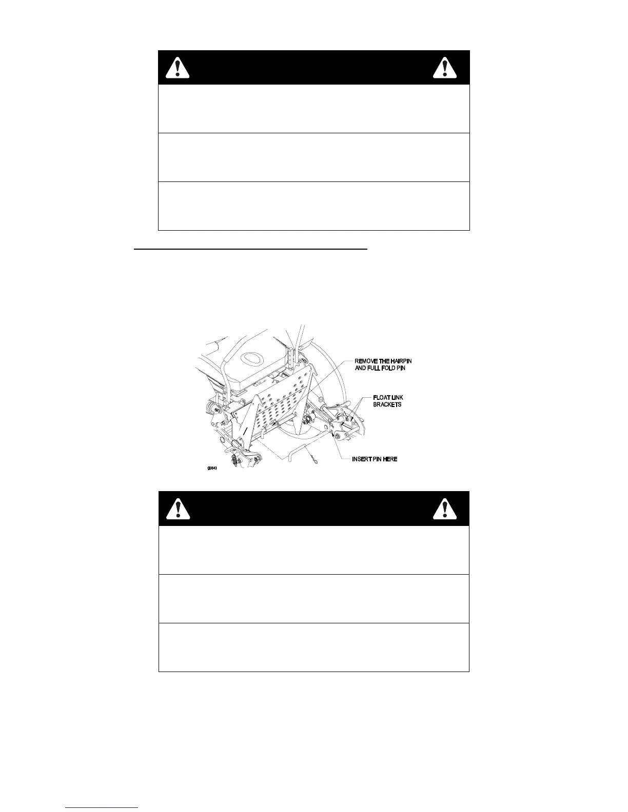 ♦ Always lower and lock mower deck in the operation