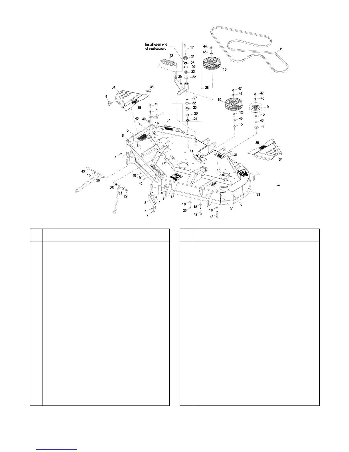 X Complete deck assembly includes all items from pages 15 & 16 except drive shaft assembly, drive shaft