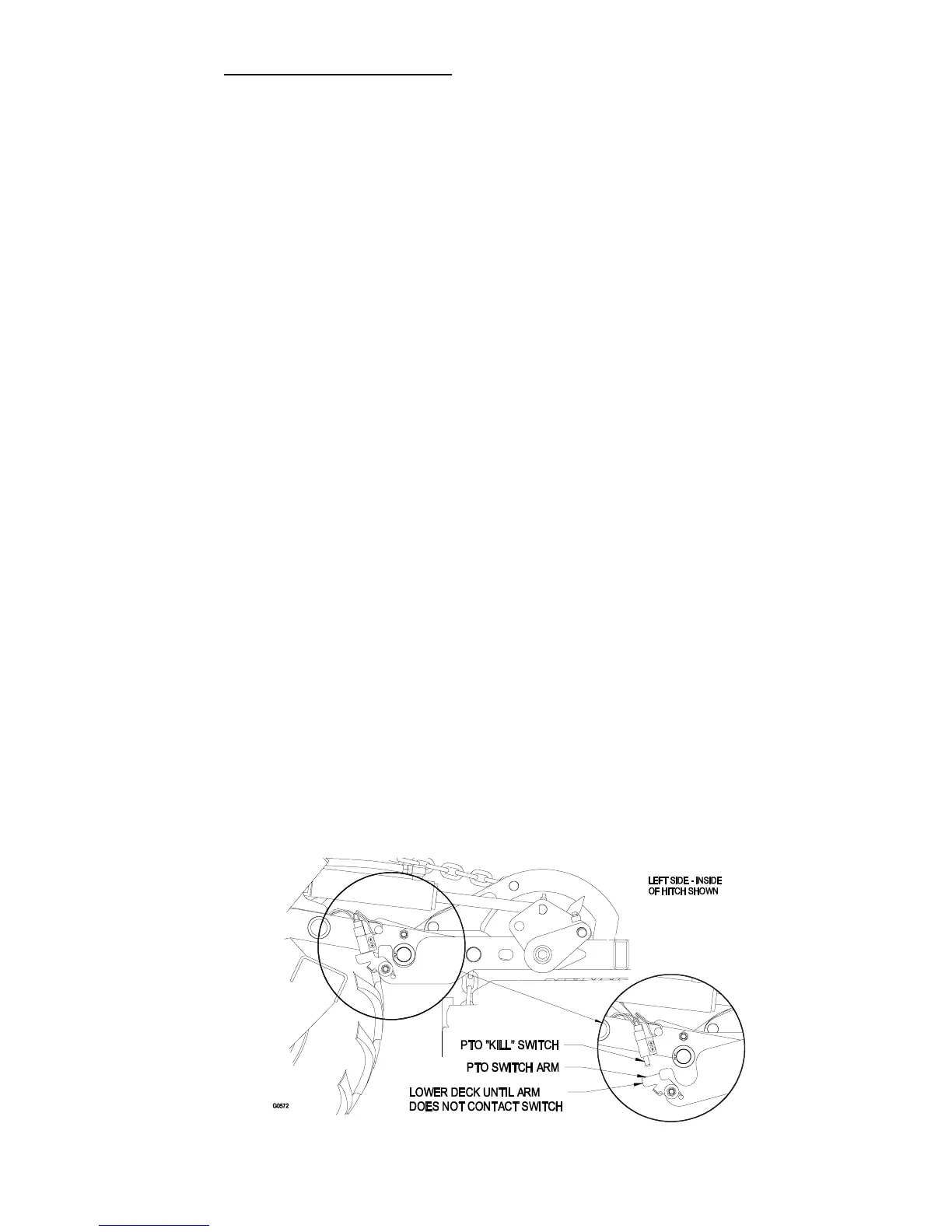 Lower the deck until the PTO switch arm is no longer depressing the PTO