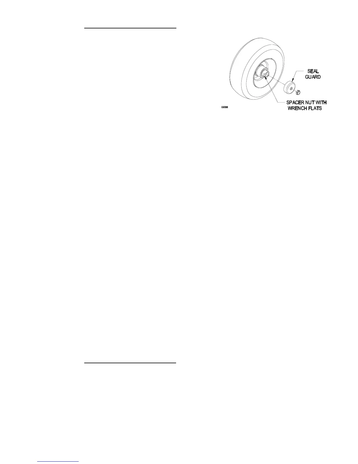 n) Re-install the seal guards over the wheel hub and insert wheel into caster