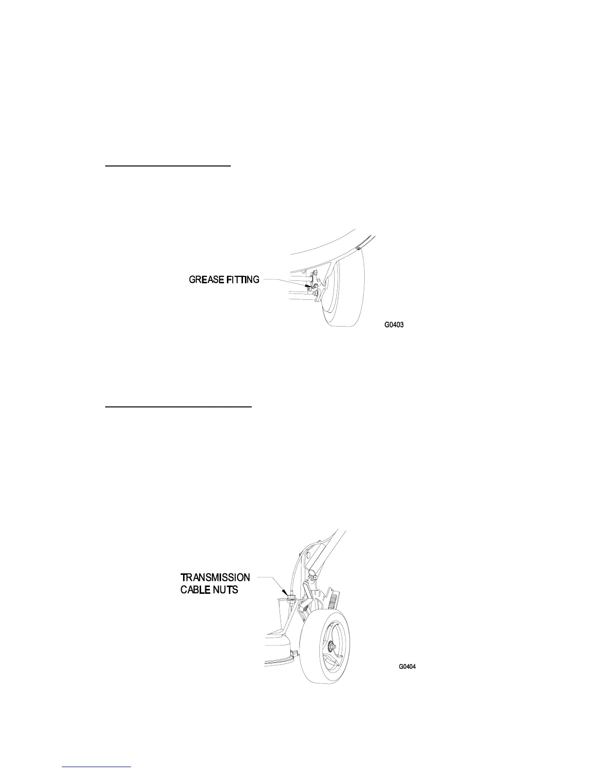 b) If the lawn mower does not self propel, rotate the transmission cable nuts