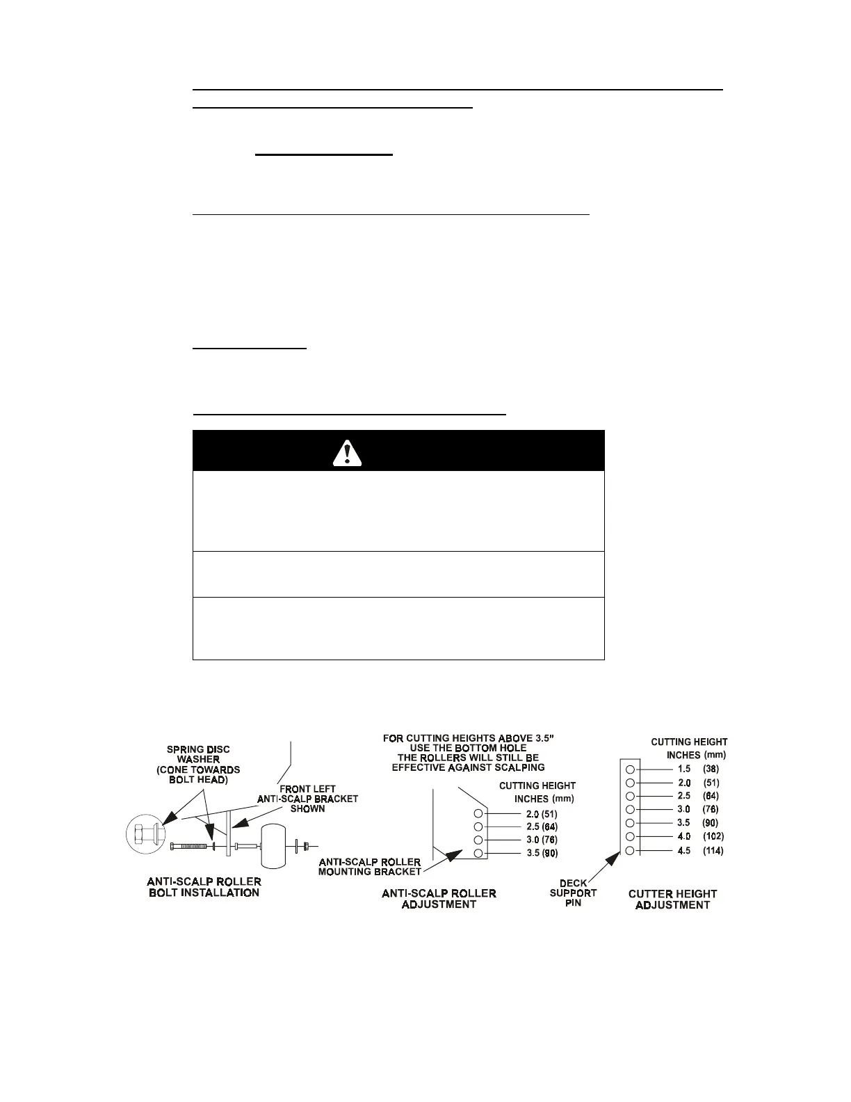 5.2.1 Cutting height and anti-scalp roller adjustment.