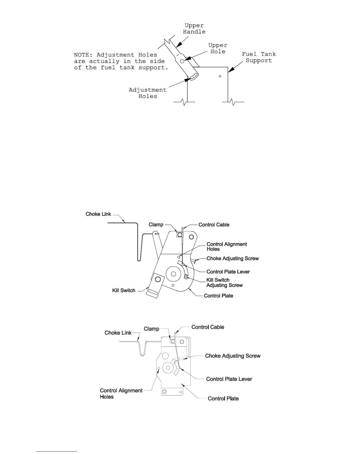 b) Route the throttle cable along the right side of the upper handle, under the fuel