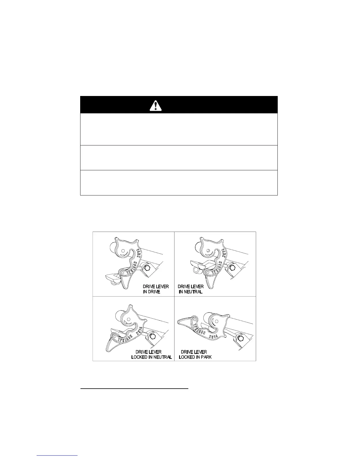 ♦ If the drive levers slip into the drive position, the unit could lurch