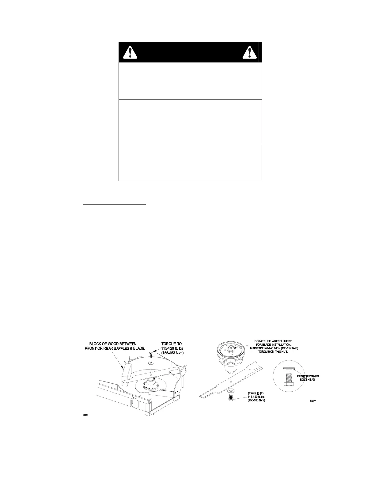 IMPORTANT: Mower blades are sharp. Wrap the blade or wear gloves, and use extra