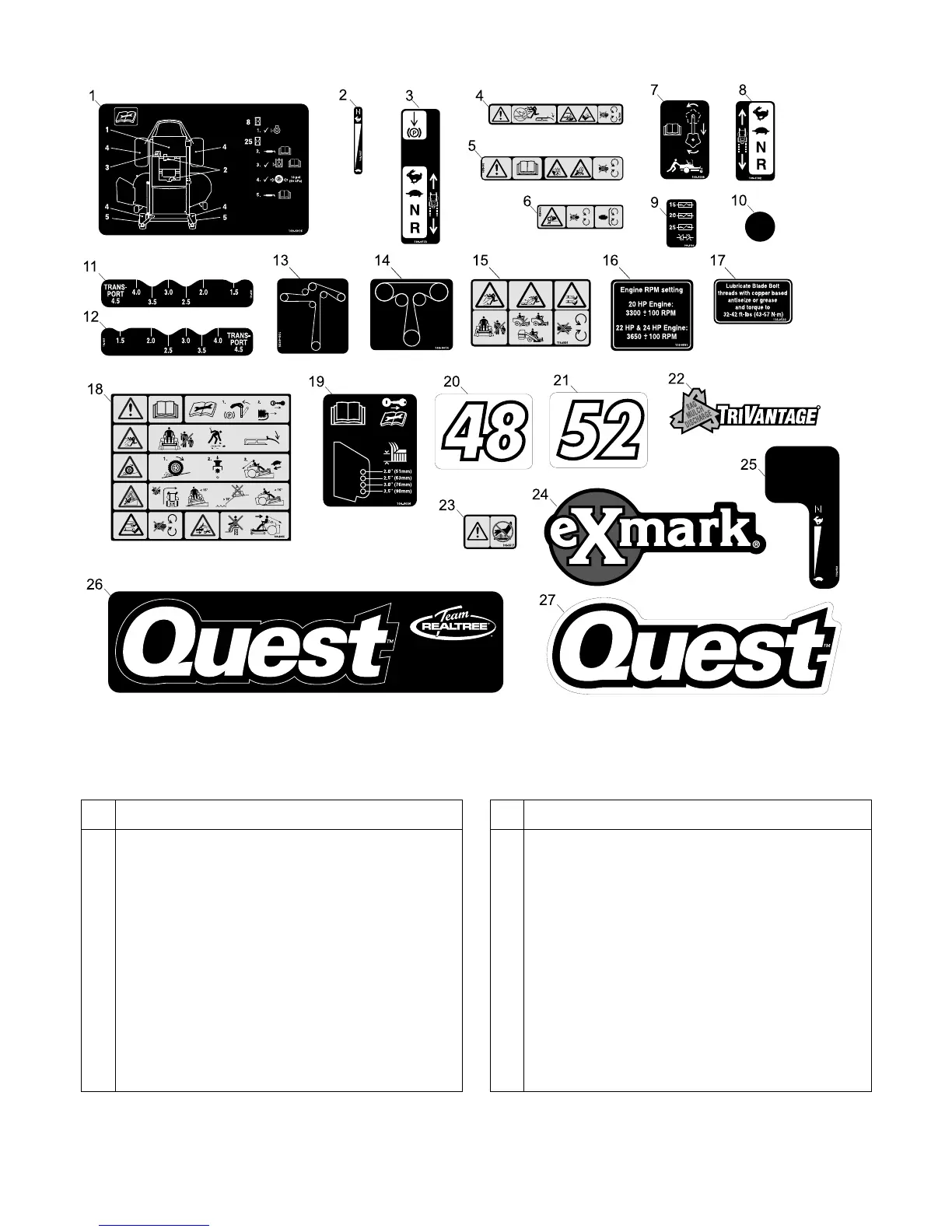 22 1-303520 Decal, Trivantage (48” & 52”)................. 1