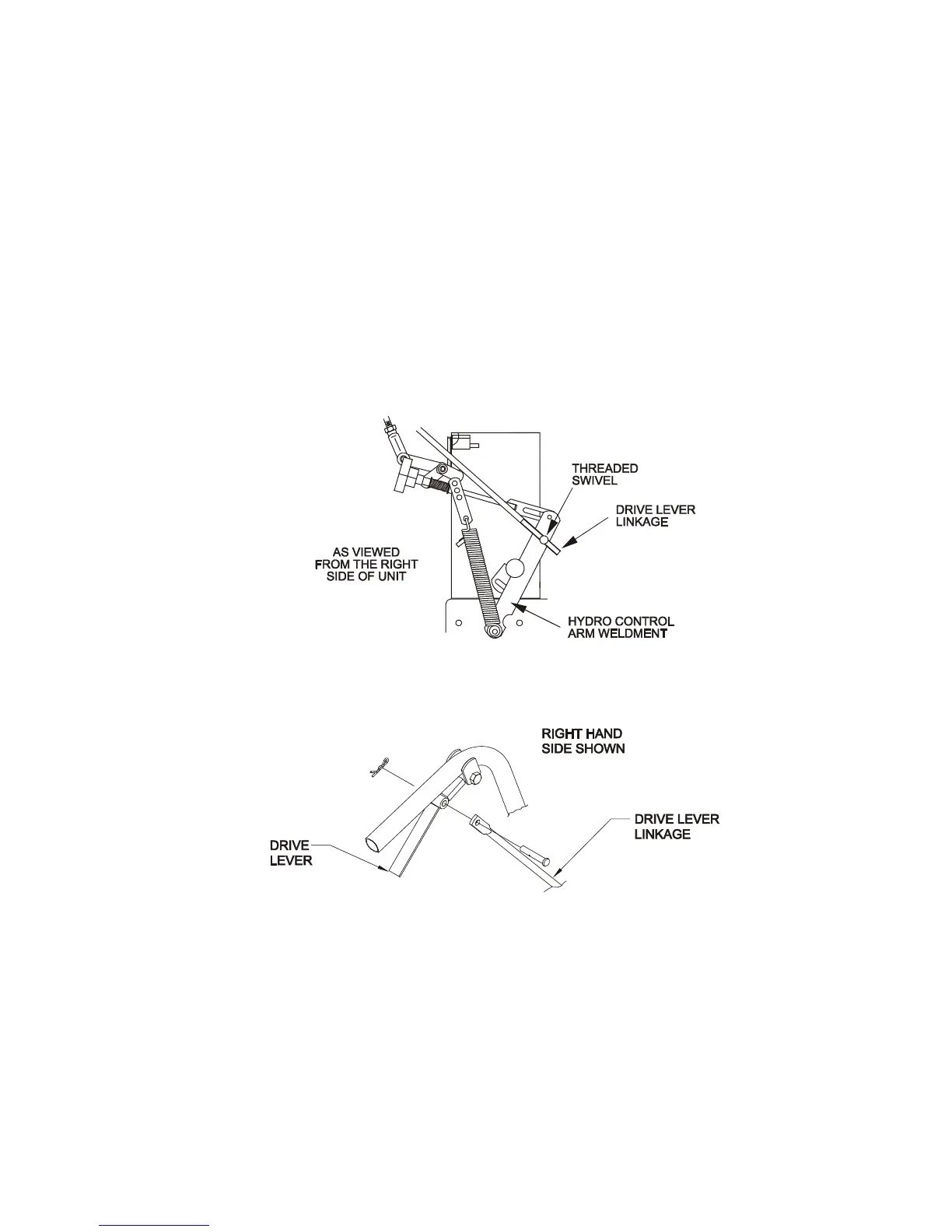 Thread each drive lever linkage into swivel until hole in upper end of drive lever