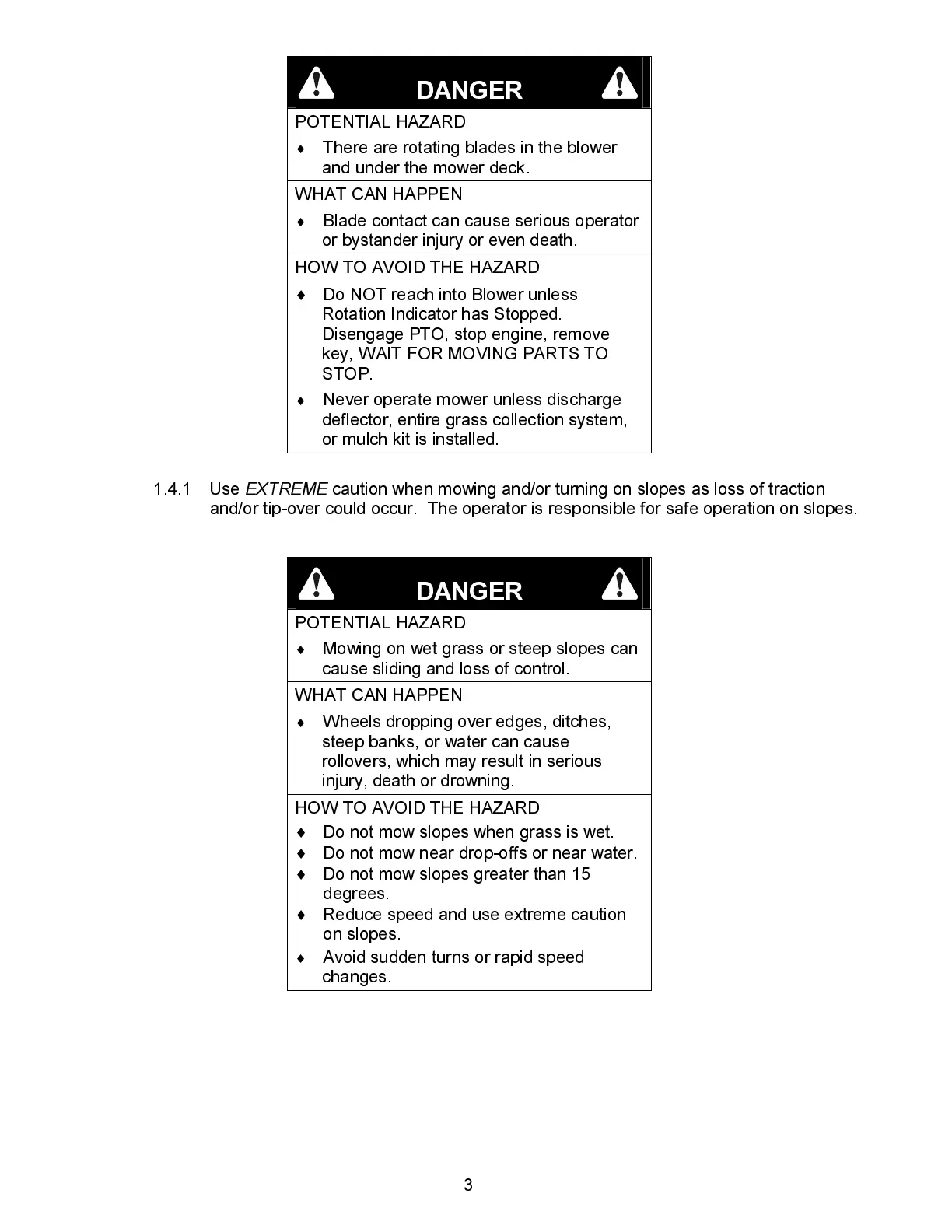 and/or tip-over could occur. The operator is responsible for safe operation on slopes.