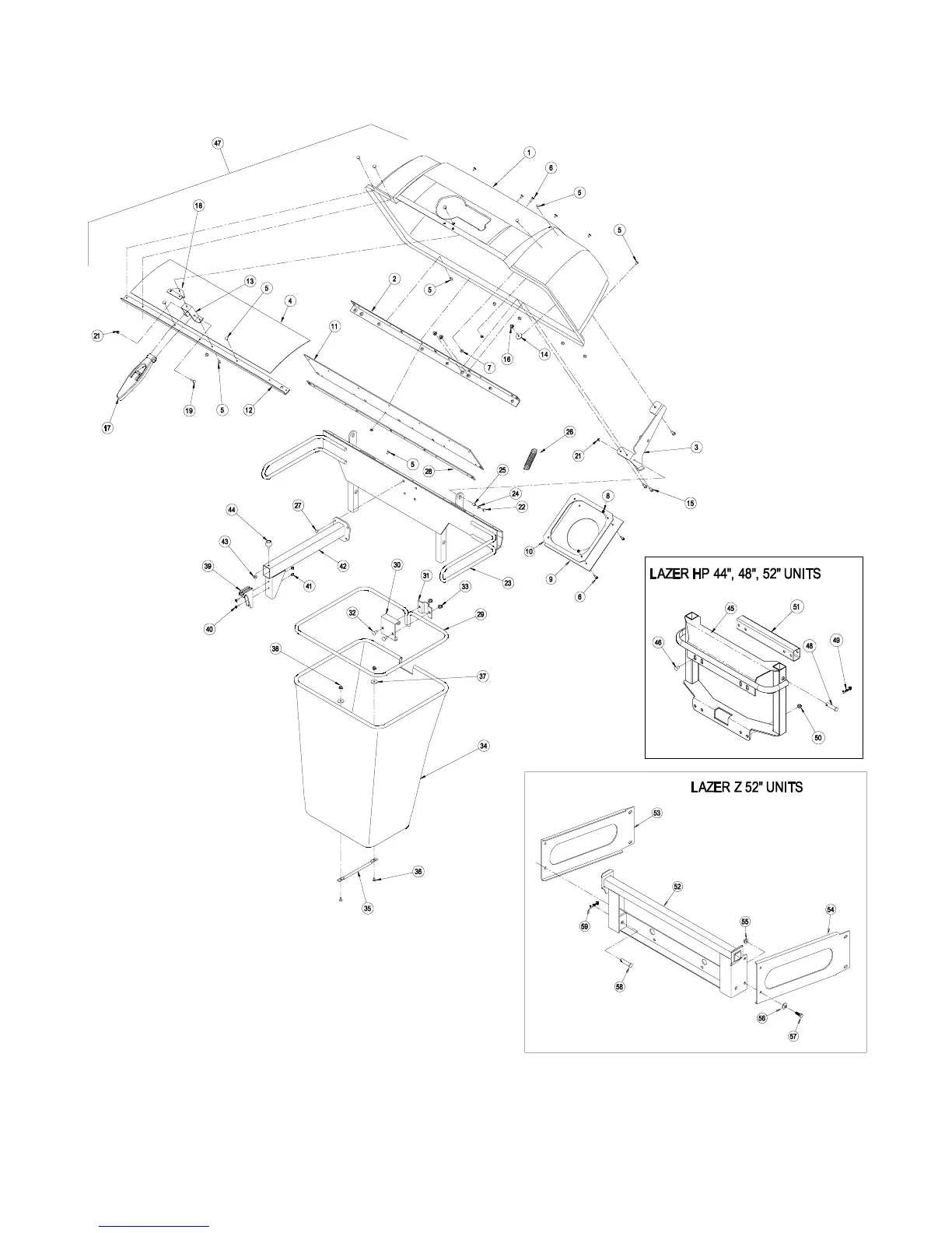 7.3 HOOD AND BAG ASSEMBLY – LAZER Z HP 44, 48, 52, & LAZER Z 52