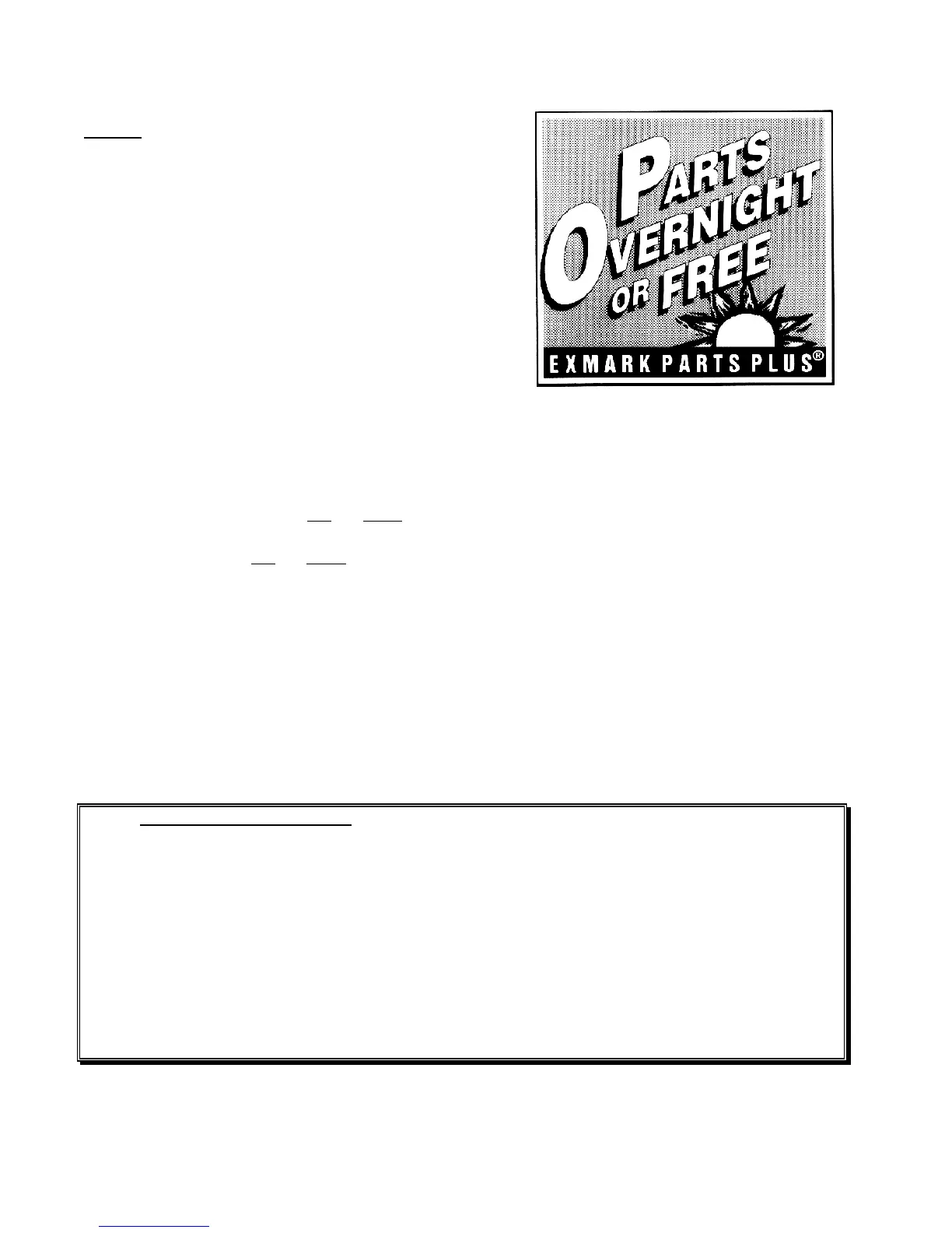 responsibility for Saturday delivery shipments. To qualify, all Exmark Parts Plus