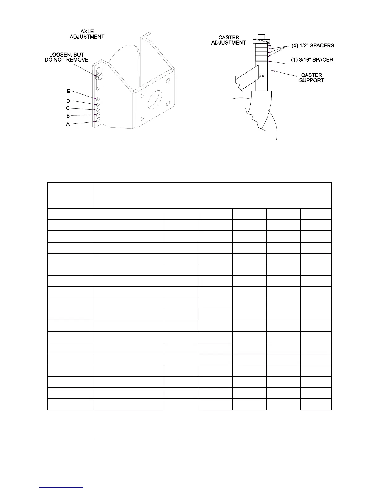 AXLE and CASTER HEIGHT ADJUSTMENT