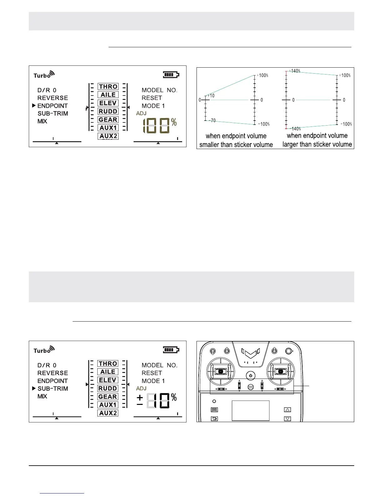 Endpoint setting works on Channel THRO, AILE, ELEV, RUDD, GEAR, AUX1, AUX2.
