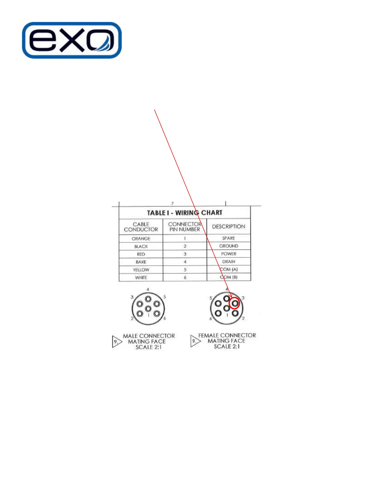 EXO CABLE CONNECTOR PIN OUT