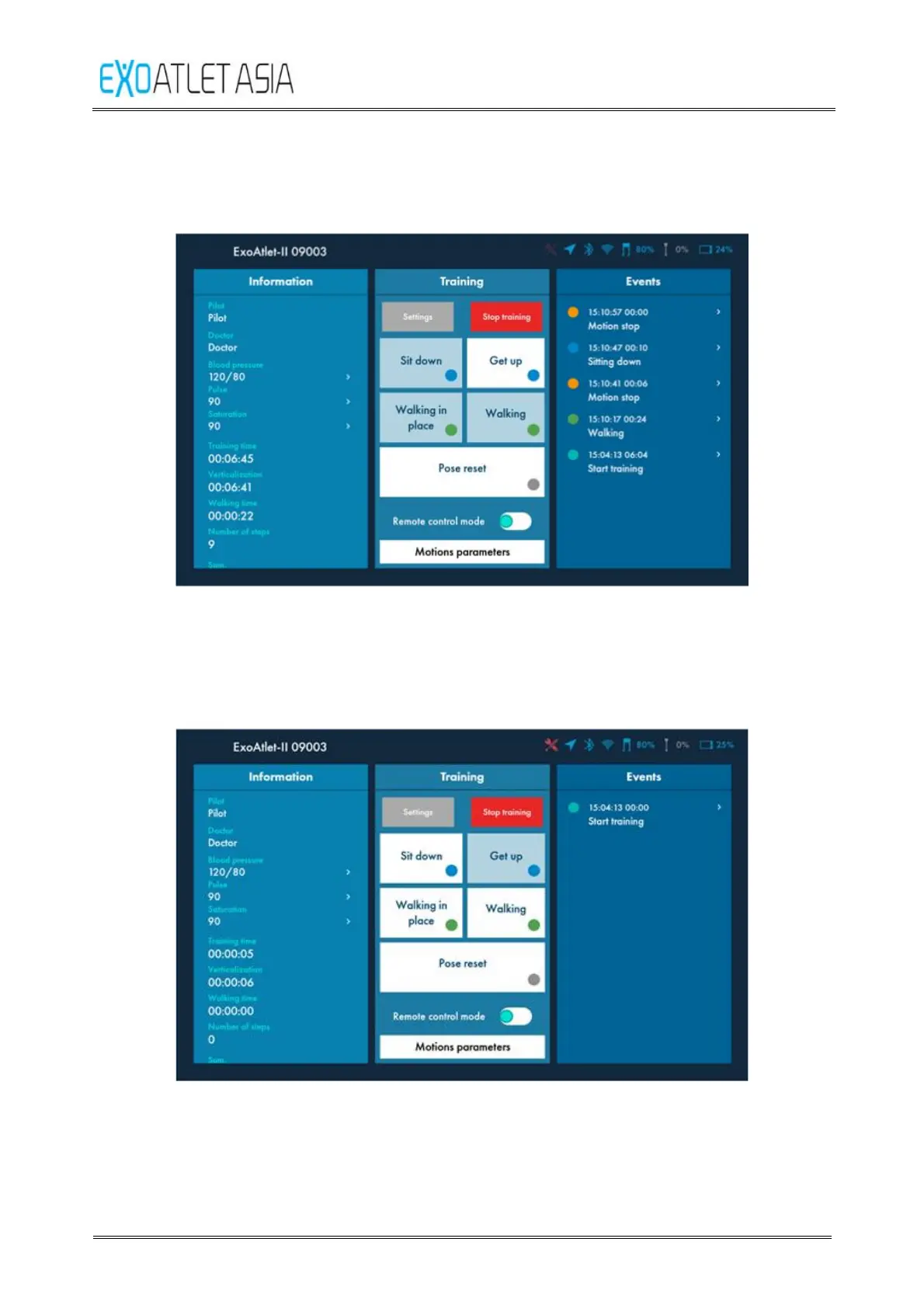 Warning: before pressing any motion button you have to warn patient about the