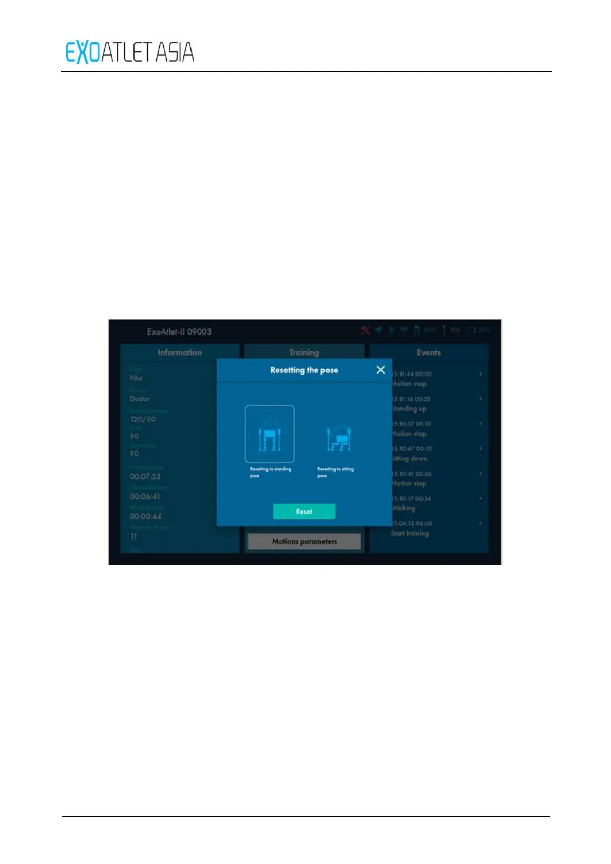 (see Figure 57). After pressing “Reset” exoskeleton will perform 3 beeping sounds