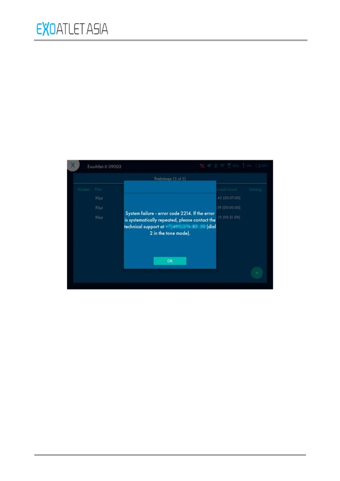 appears on the screen. Exoskeleton will automatically send a stop command and if