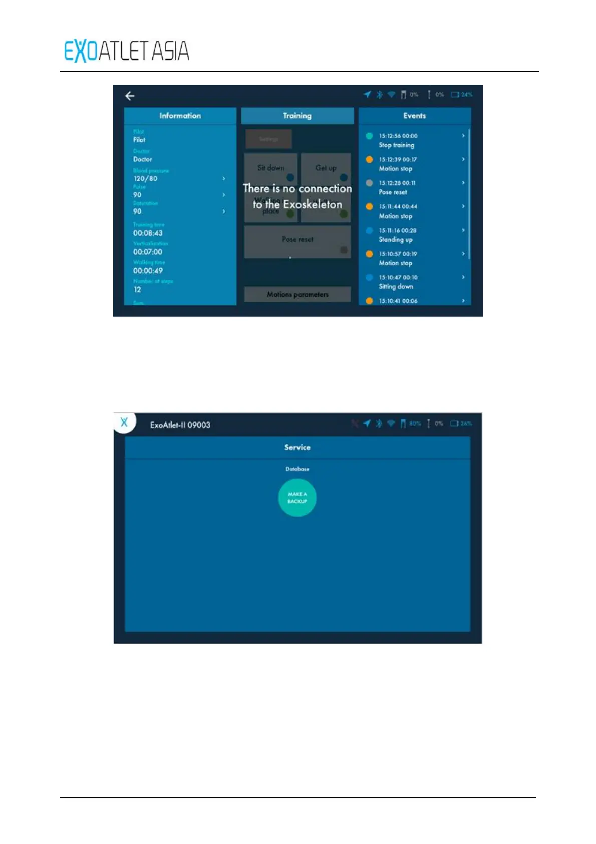 needed for a technical support. After pressing “Make a backup” button exoskeleton will