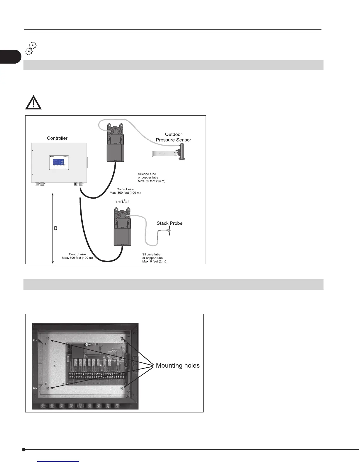 The control and the transducer must be installed inside, preferably in the mechanical room (boiler room).