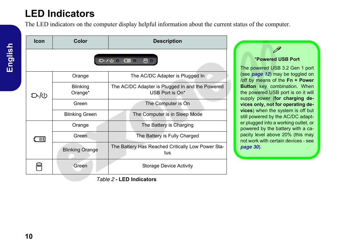 The LED indicators on the computer display helpful information about the current status of the computer.