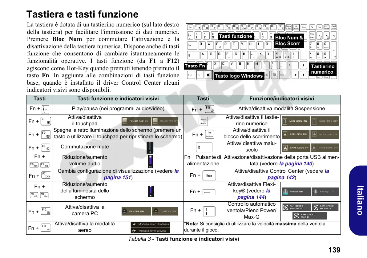 Tasti Tasti funzione e indicatori visivi Tasti Funzione/indicatori visivi