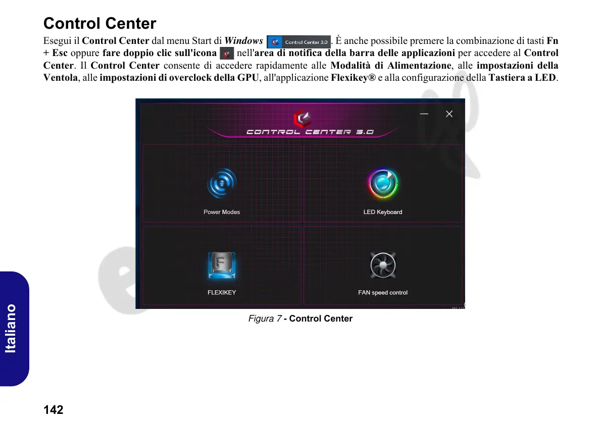 Esegui il Control Center dal menu Start di Windows . È anche possibile premere la combinazione di tasti Fn