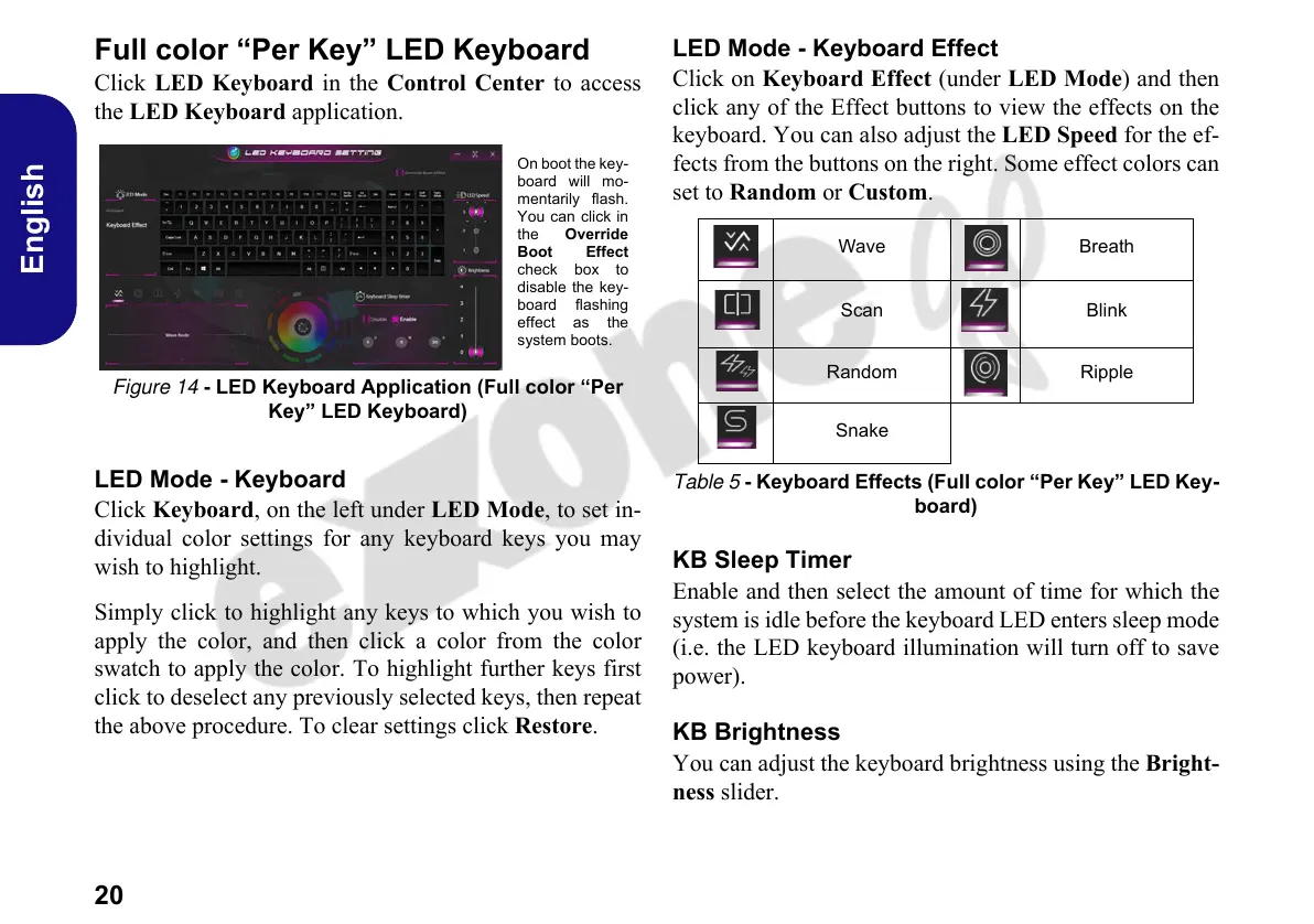 Table 5 - Keyboard Effects (Full color “Per Key” LED Key-