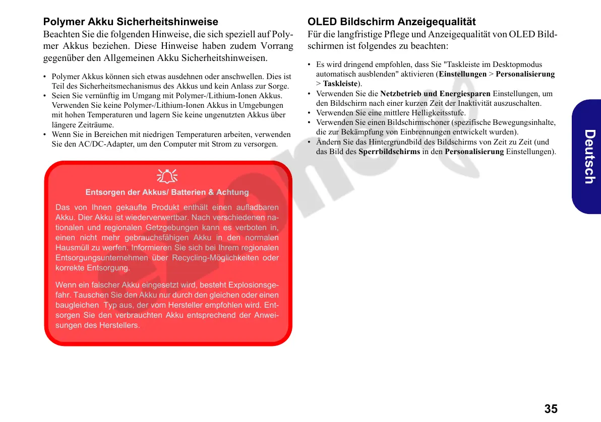 • Polymer Akkus können sich etwas ausdehnen oder anschwellen. Dies ist