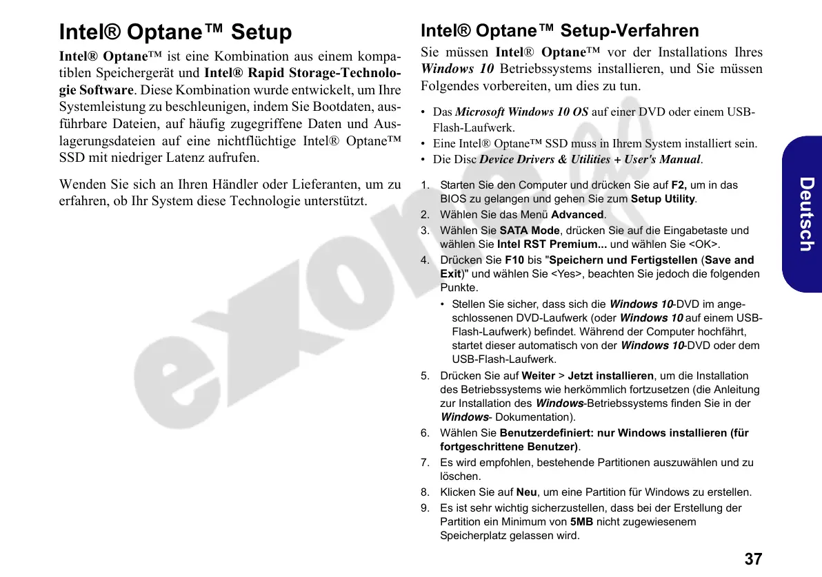 Sie müssen Intel® Optane™ vor der Installations Ihres