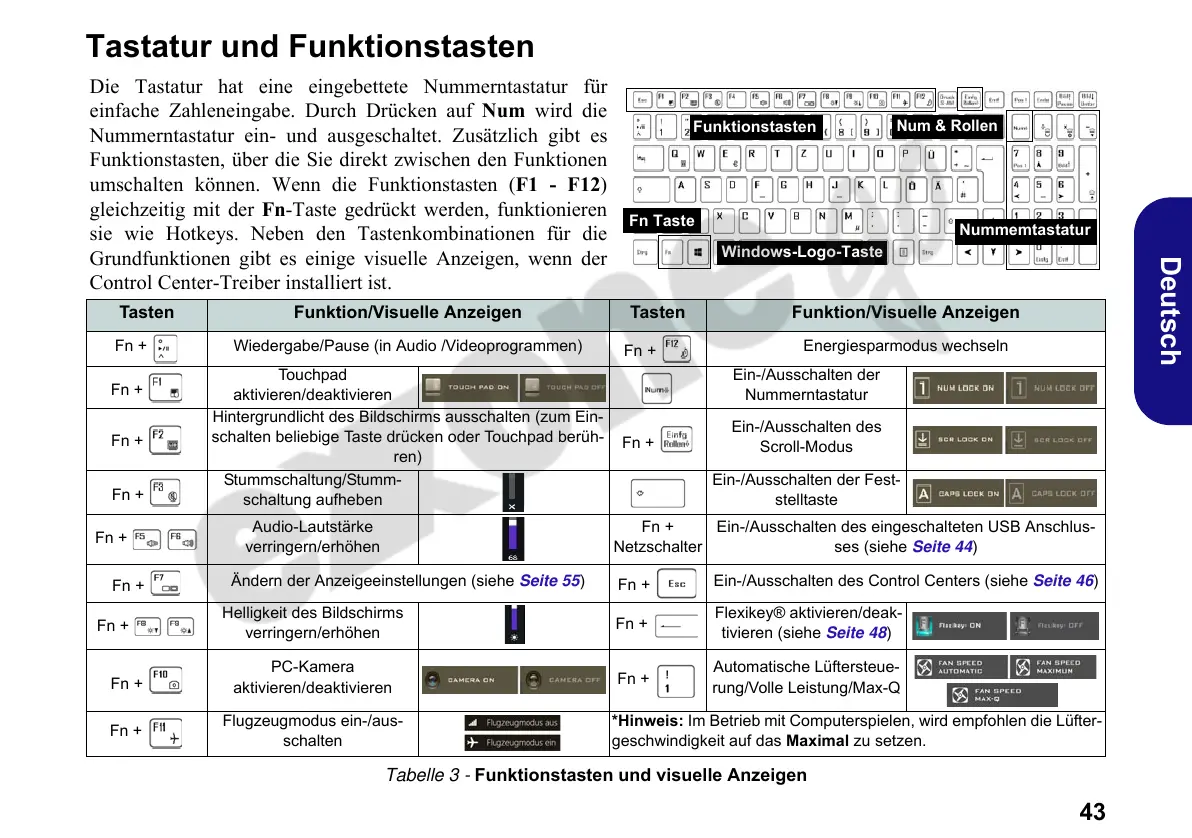 umschalten können. Wenn die Funktionstasten (F1 - F12)