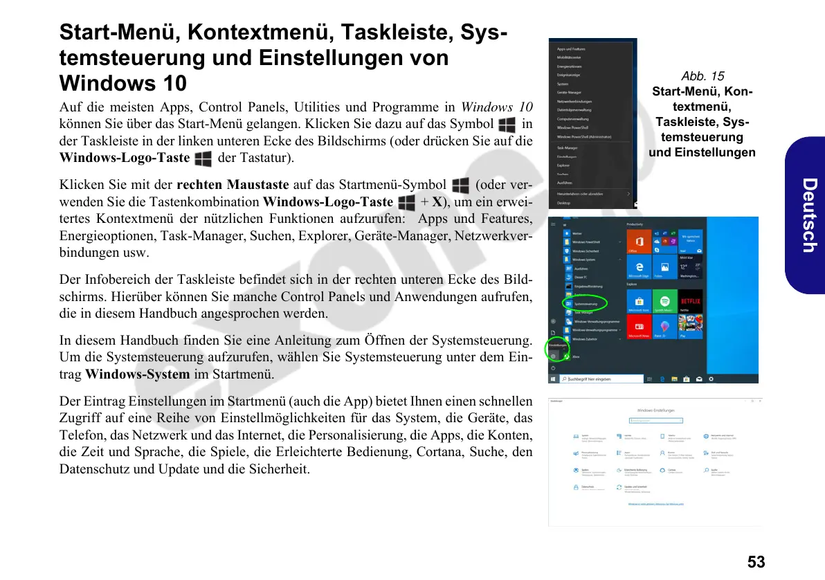 Start-Menü, Kontextmenü, Taskleiste, Sys-